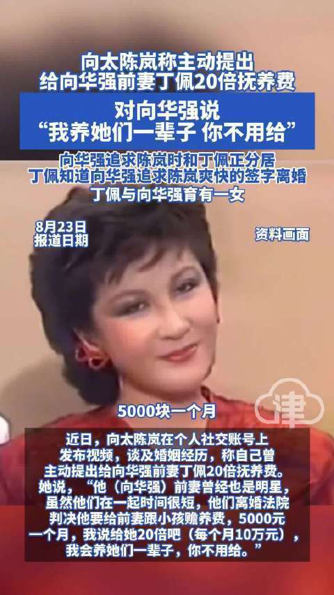 向太陈岚自曝每月给向华强前妻丁佩10万赡养费,一给就是46年!更离谱的是,这笔钱竟从她自己账户支出,和向华强无关。法院判决明明只有5000,她为何要直接翻20倍?背后藏着一个让全网沉默的承诺。